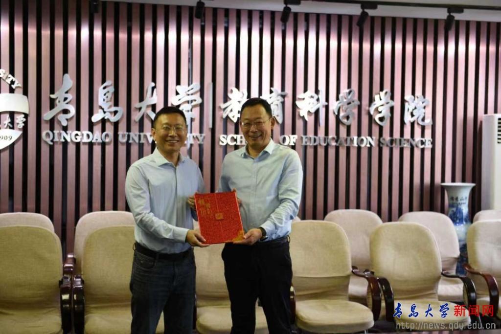 刘恩贤副校长在致辞中,对梅豹先生及青岛汉印教育咨询有限公司的善举表示诚挚感谢。他表示,教育科学学院(原师范学院)作为学校教师教育的重要基地,多年来在教师教育改革、教育技术创新和心理健康服务等方面成果显著,培养了大批基础教育领域的骨干力量。青岛市中小学、幼儿园校(园)长中,已有相当比例毕业于青大师范体系,成为学校最宝贵的教育资源和精神传承者。下一步,学校将继续深化“校地融合、校企协同”,广泛凝聚社会与校友力量,共同推动教育事业高质量发展。 梅豹在致辞中回顾了自己与青岛大学近二十年的合作渊源。他介绍,自2007年以来,先后与学校多次开展合作,积极推动实战型教学与研究生考研培训,为社会输送了大批优秀人才。梅豹表示,个人事业的发展离不开母校的培养与支持,能够以捐资助学的方式回馈母校,是一份荣誉,更是一份责任。希望通过设立“汉印教育基金”,为学院师生提供更多成长助力,助推学院教育事业进一步发展。
