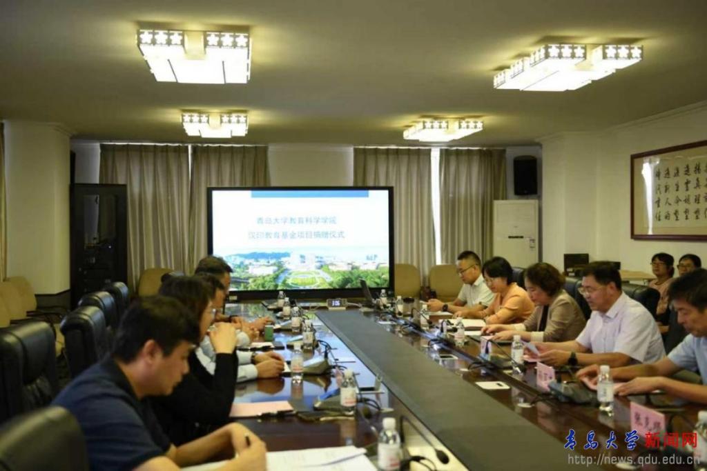 10月11日下午,教育科学学院“汉印教育基金”项目捐赠仪式在德润楼301会议室举行。青岛汉印教育咨询有限公司总经理梅豹,校党委常委、副校长刘恩贤,合作发展处处长、教育发展基金会秘书长王海荣,教育科学学院院长孙百才出席仪式。仪式由教育科学学院党委书记刘清亮主持。